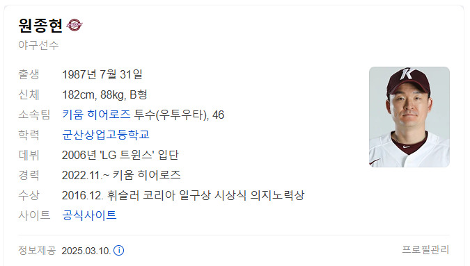원종현 (LG 트윈스) - 경험이 풍부하고 안정적인 피칭을 보여주는 베테랑 우완입니다. 특히 제구력이 뛰어나 볼넷을 적게 내주며, 젊은 투수들의 멘토 역할도 할 수 있습니다. 두산 불펜에 안정감을 더해줄 수 있는 신뢰할 수 있는 투수입니다.