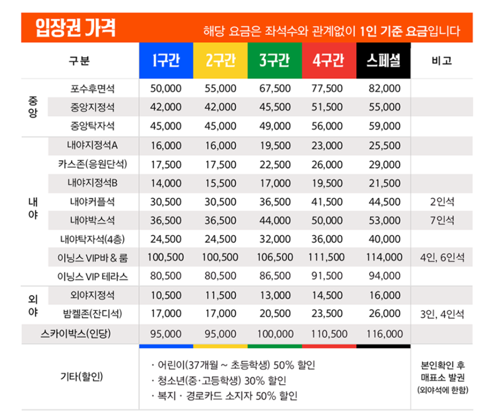 인기 경기의 경우 조기 매진될 수 있으니 가급적 온라인 예매 권장